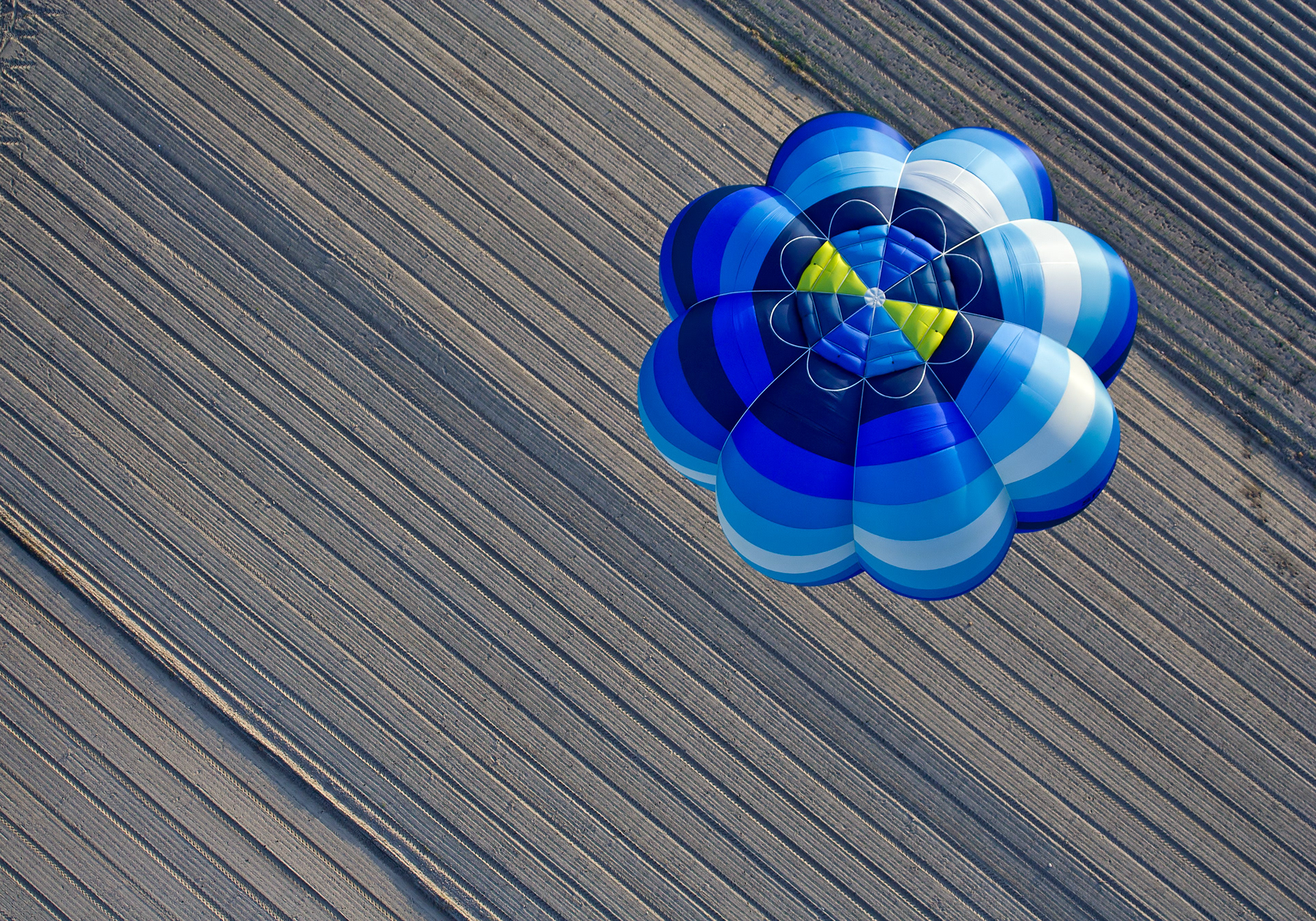 Hot air balloon over the field. Modlin, Poland.