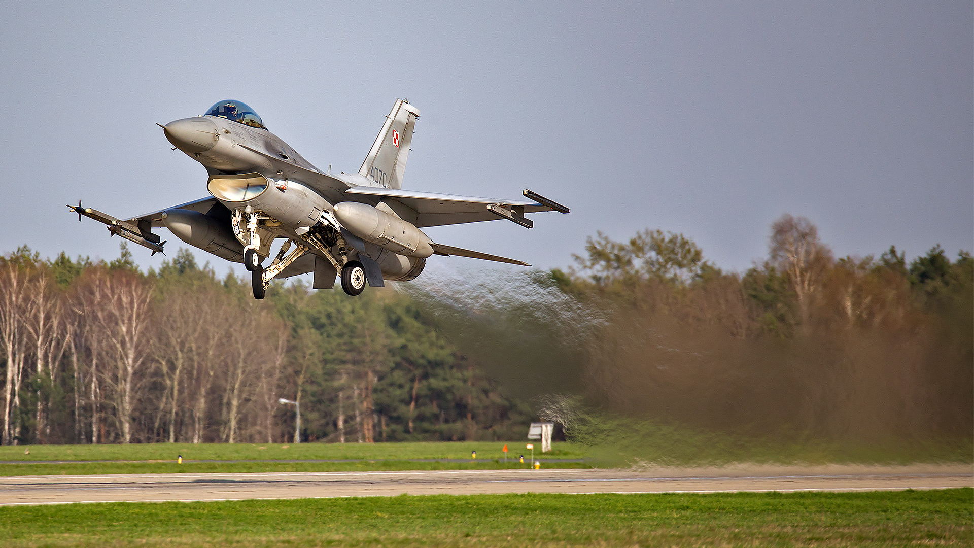 Lockheed Martin F-16C Fighting Falcon departing from Airbase. Poland.
